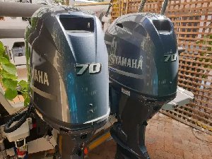 2019 2 x 70hp 4-stroke Yamaha F70 AET Long shaft outboards 50 hrs, with 6YC engine managem...