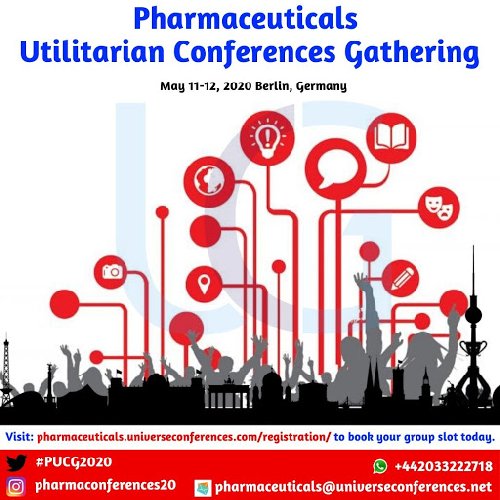 Conference Name: Pharmaceuticals Utilitarian Conferences GatheringShort Name: PUCG2020BerlinDates: May 11-12, 2020Venue: Berlin, GermanyLanguage: Only EnglishScientific Program: It will only include Plenary speakers, keynote speakers, panel discussions and presentations in parallel sessions.Audience: Global Leaders, Industrialists, Business Delegates, Students, Entrepreneurs, ExecutivesEmail: pharmaceuticals@universeconferences.netVisit: https://pharmaceuticals.universeconferences.comCall for Papers: https://pharmaceuticals.universeconferences.com/submit-abstract/Register here: https://pharmaceuticals.universeconferences.com/registrationBrochure: https://pharmaceuticals.universeconferences.com/download-brochure/ Exhibitor/Sponsor: https://pharmaceuticals.universeconferences.com/why-sponsor-exhibit/ Call Us: +12076890407WhatsApp Us: +442033222718